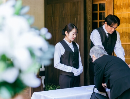 ご逝去の知らせを受けてからの段取りや関係者へのご案内、当日の進行まで、企業ならではの配慮が求められる弔事を、経験豊富なスタッフが一貫してサポートいたします。